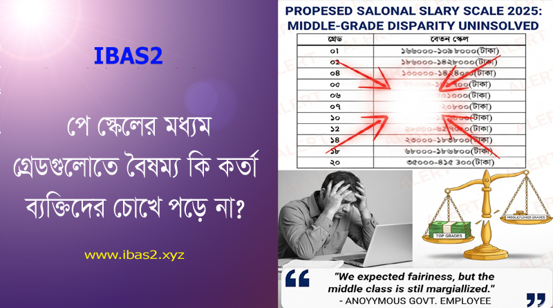 মাঝারি গ্রেডের উপেক্ষা: গ্রেড-১১ থেকে গ্রেড-১৭ পর্যন্ত বেতন বৃদ্ধির পরিসর অত্যন্ত সংকীর্ণ। উদাহরণস্বরূপ, গ্রেড-১৪ এবং গ্রেড-১৫ এর মধ্যে প্রারম্ভিক পার্থক্য মাত্র ৭০০ টাকা।