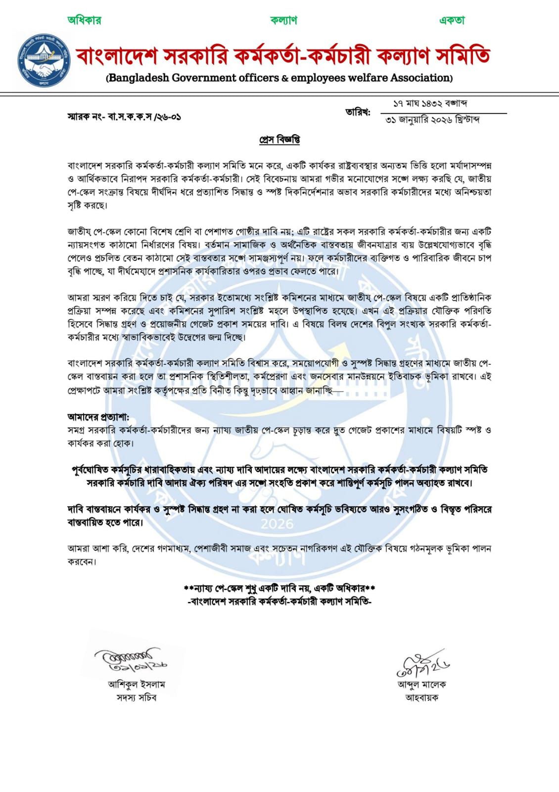 ১. নতুন সংগঠনের যাত্রা: ‘বাংলাদেশ সরকারি কর্মকর্তা-কর্মচারী কল্যাণ সমিতি’